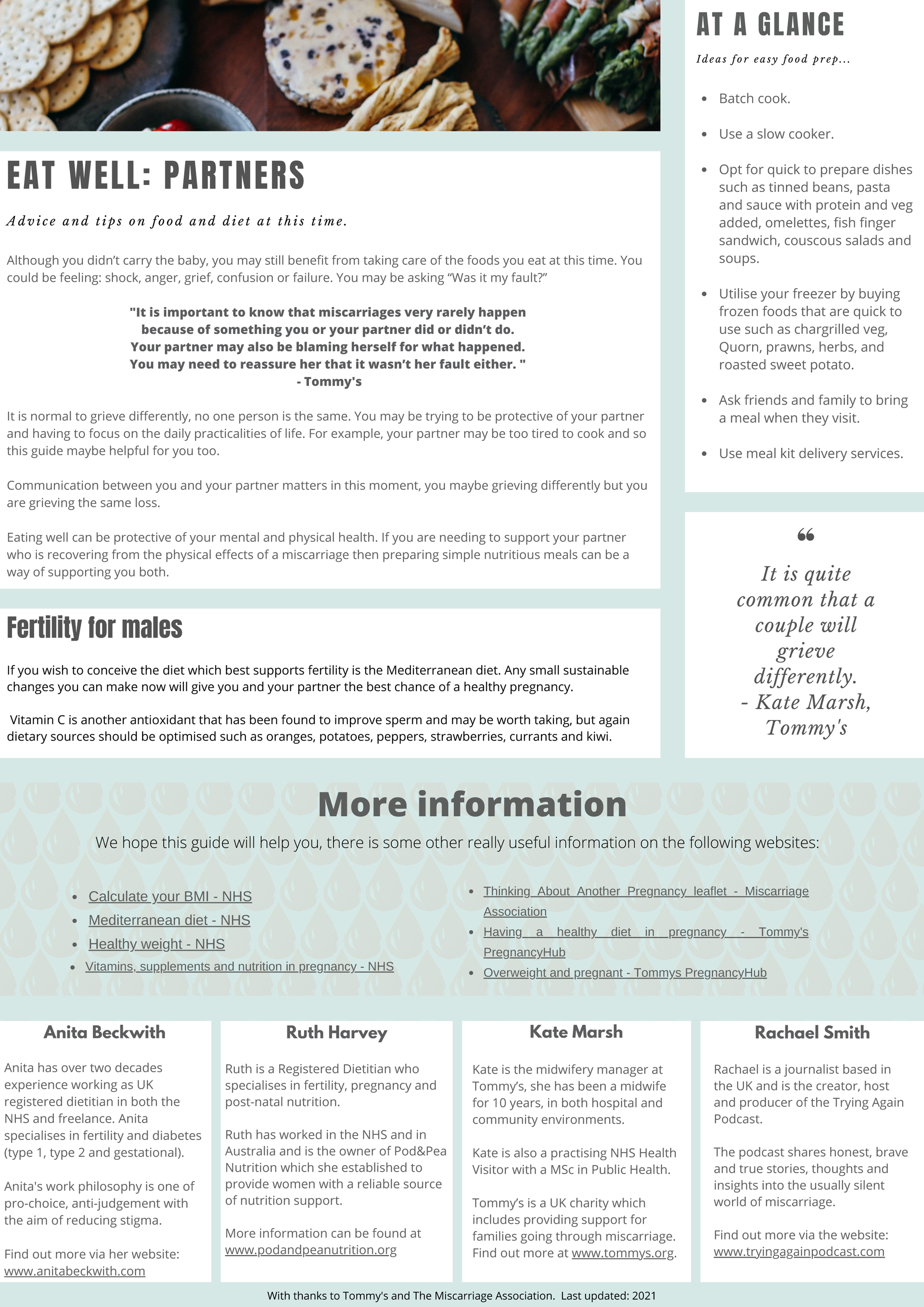 You can view and download the free Eat Well: Nutrition guide to support recovery from pregnancy and baby loss here